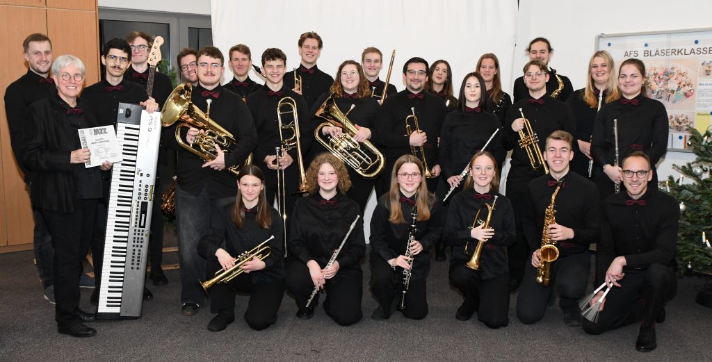 Zum ersten Mal in ihrer langjährigen Bandgeschichte haben die jungen Musiker*innen der AFS BIG BAND ein eigenständiges Weihnachtsprogramm zusammengestellt, mit dem sie in der Weihnachtssaison 25/26 zu verschiedenen Anlässen auftreten.