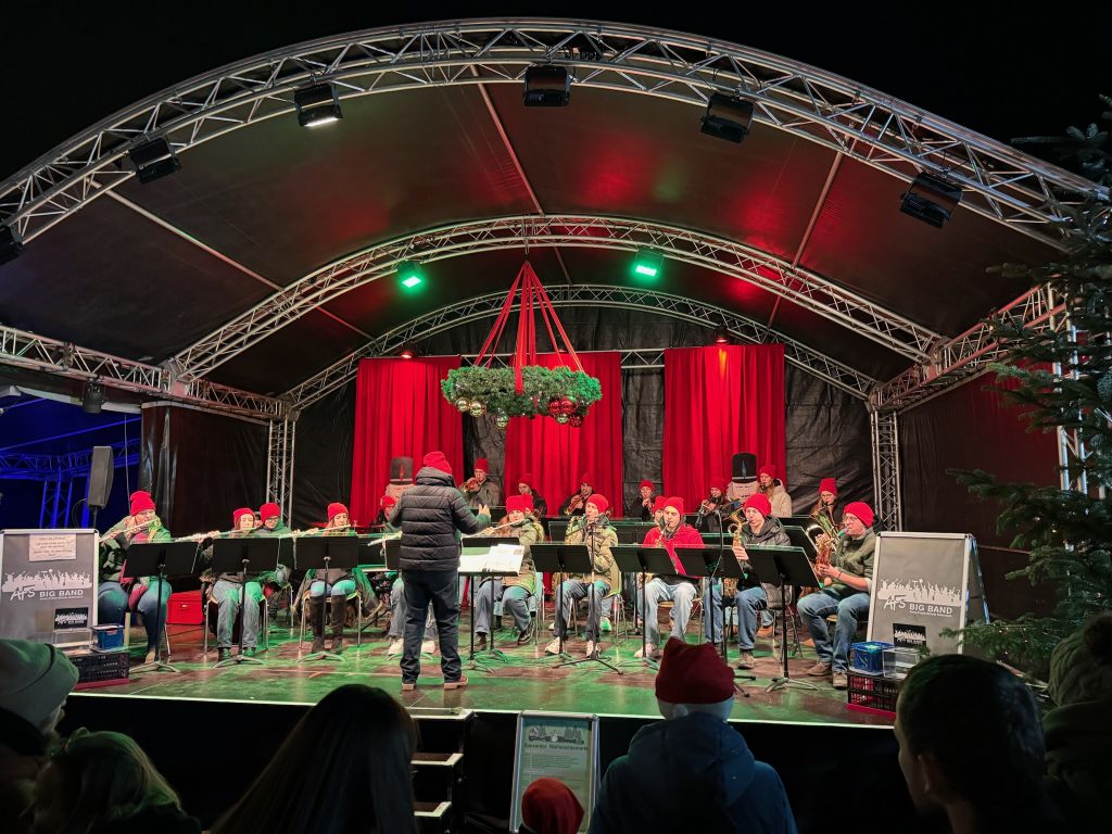 Die Stimmung ist trotz Regenwetters super und euphorisch, das Weihnachtsmarktpublikum und die Fans der AFS Big Band sind begeistert – ein Erfolg auf ganzer Linie.