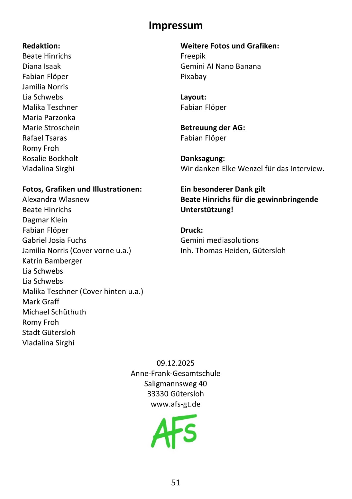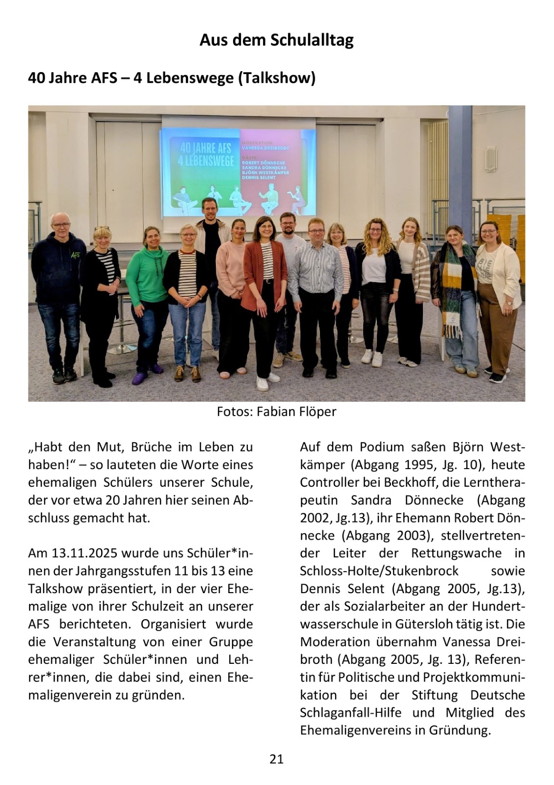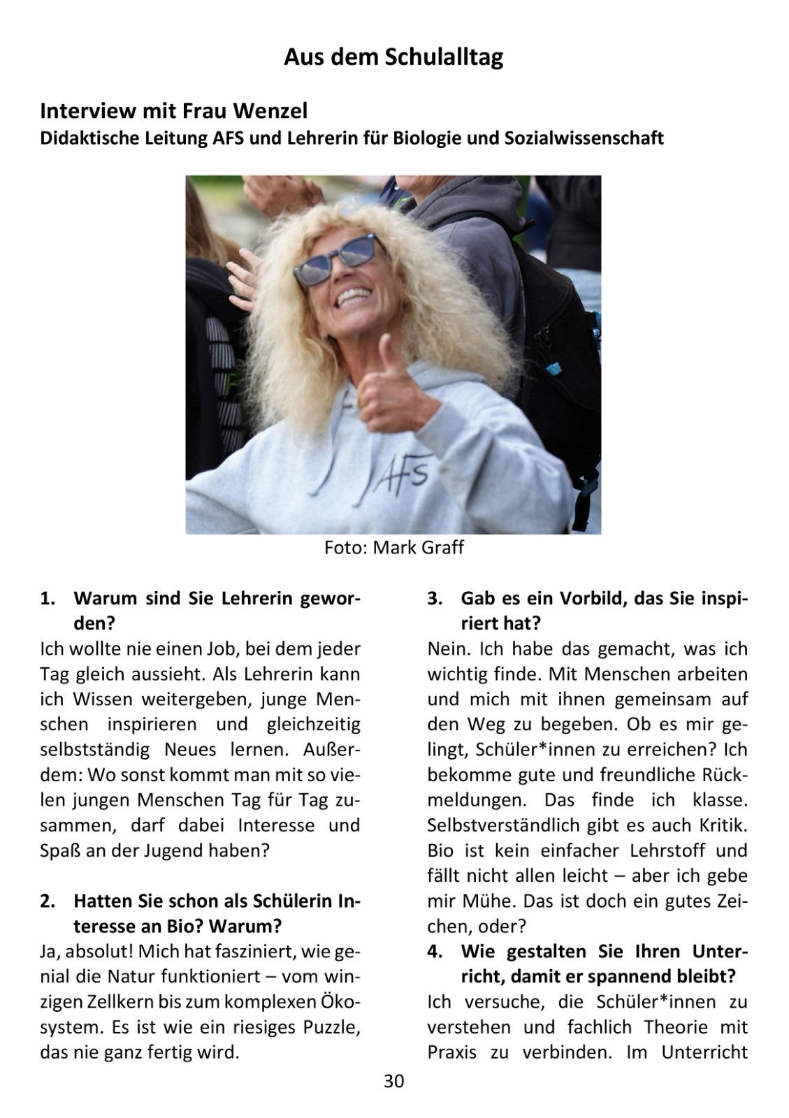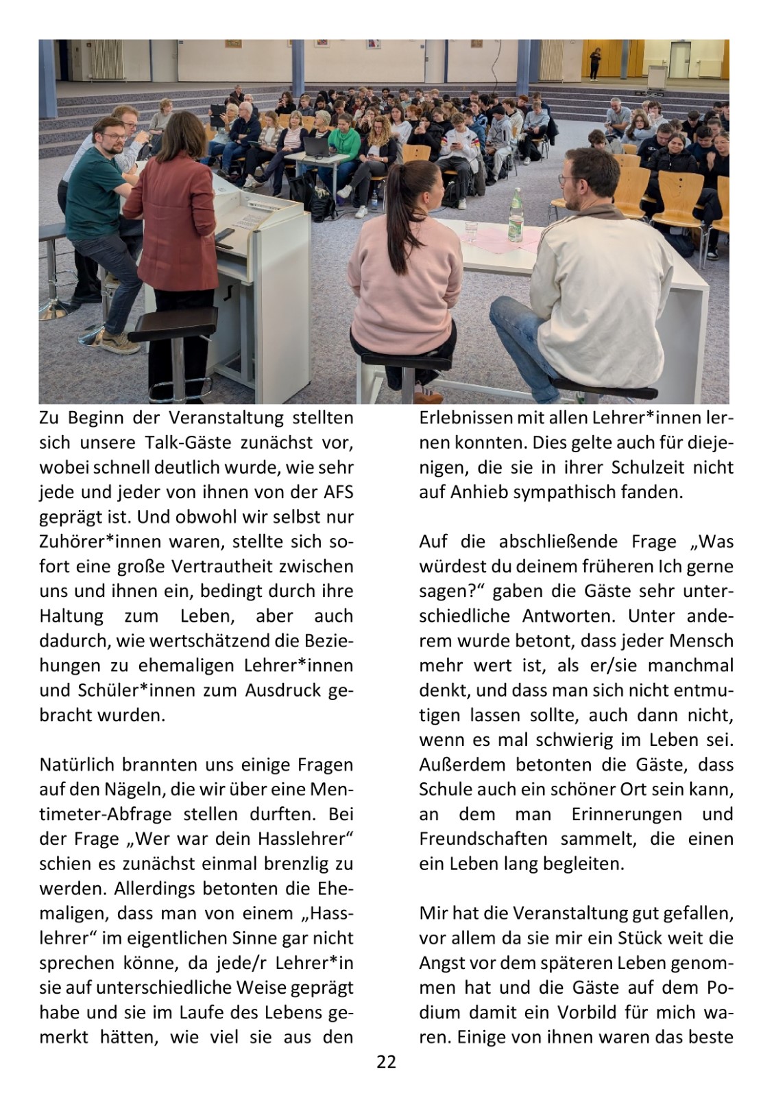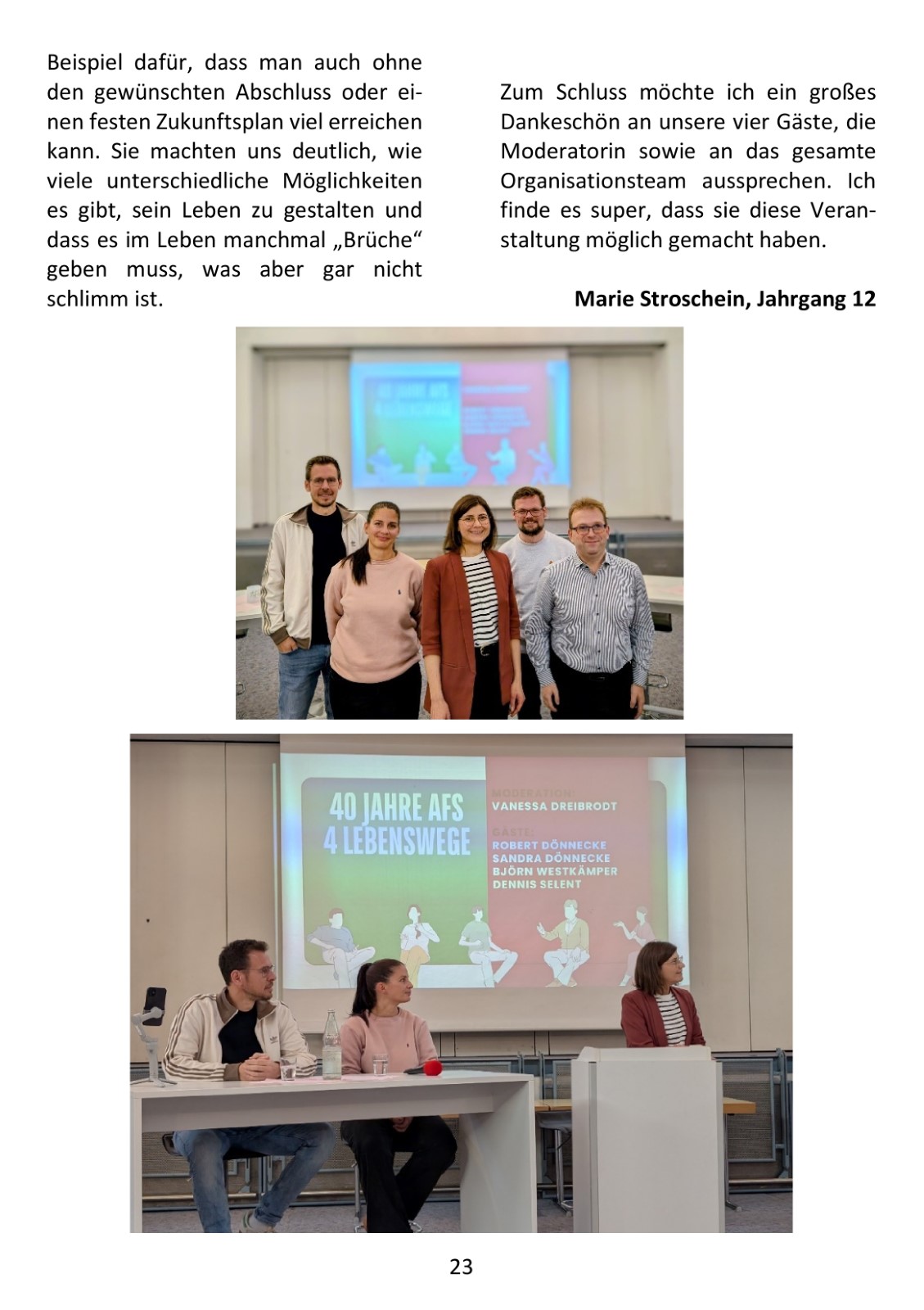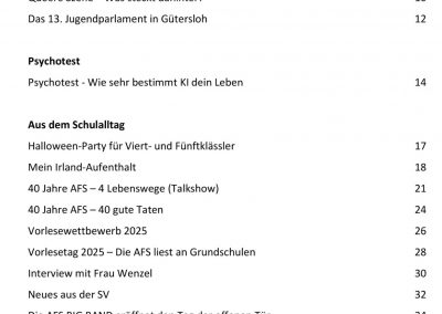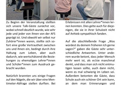Berufsorientierung genießt an der AFS hohe Priorität, mit dem Siegel als „Berufswahlfreundliche Schule“ wurde sie fünf Mal ausgezeichnet. Das Seminar „Was kommt nach dem Abitur? “ ist nur ein Baustein eines umfangreichen Berufsorientierungsprogramms, das alle Schüler*innen absolvieren. Ermöglicht wurde es auch durch die Unterstützung der Osthushenrich-Stiftung, die als Sponsor das Projekt förderte.