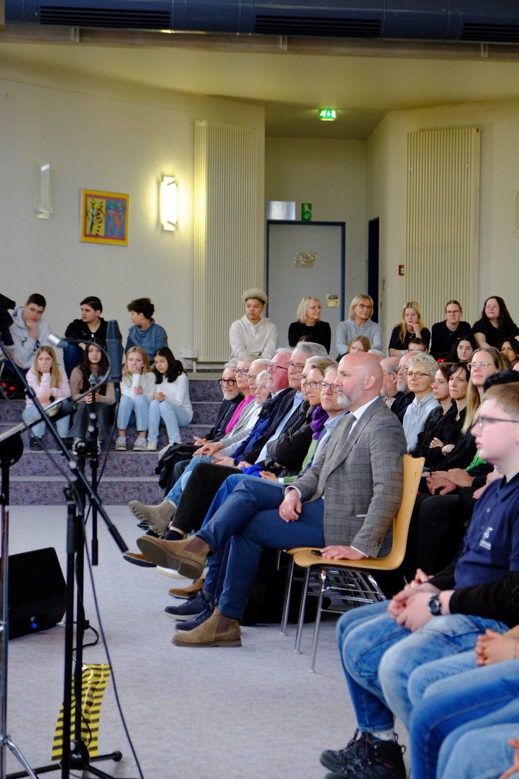 Ein besonderer Moment war der Besuch von Bürgermeister Matthias Trepper, der die jungen Musikerinnen und Musiker der Anne-Frank-Schule herzlich begrüßte und sie für ihr Engagement lobte. Seine anerkennenden Worte waren eine schöne Wertschätzung für die Kinder und Jugendlichen, die ihre Musik mit so viel Einsatz präsentierten.