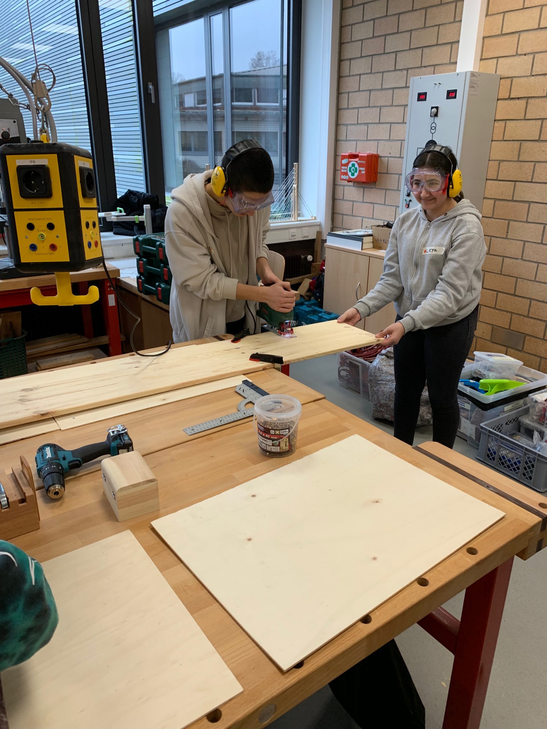 Dringend verbessert werden müsse die „Abiecke“, so lautete das Ergebnis einer Abstimmung in der Gruppe und dann legten die Schüler*innen los. Zwei Tage lang arbeiteten sie daran, unterstützt von Team*innen der Organisation Forever Day One und Mitarbeiter*innen des Baumarktes Hornbach. In den Technikräumen standen Materialien und Werkzeuge aller Art bereit, um Ideen in die Praxis umzusetzen.
