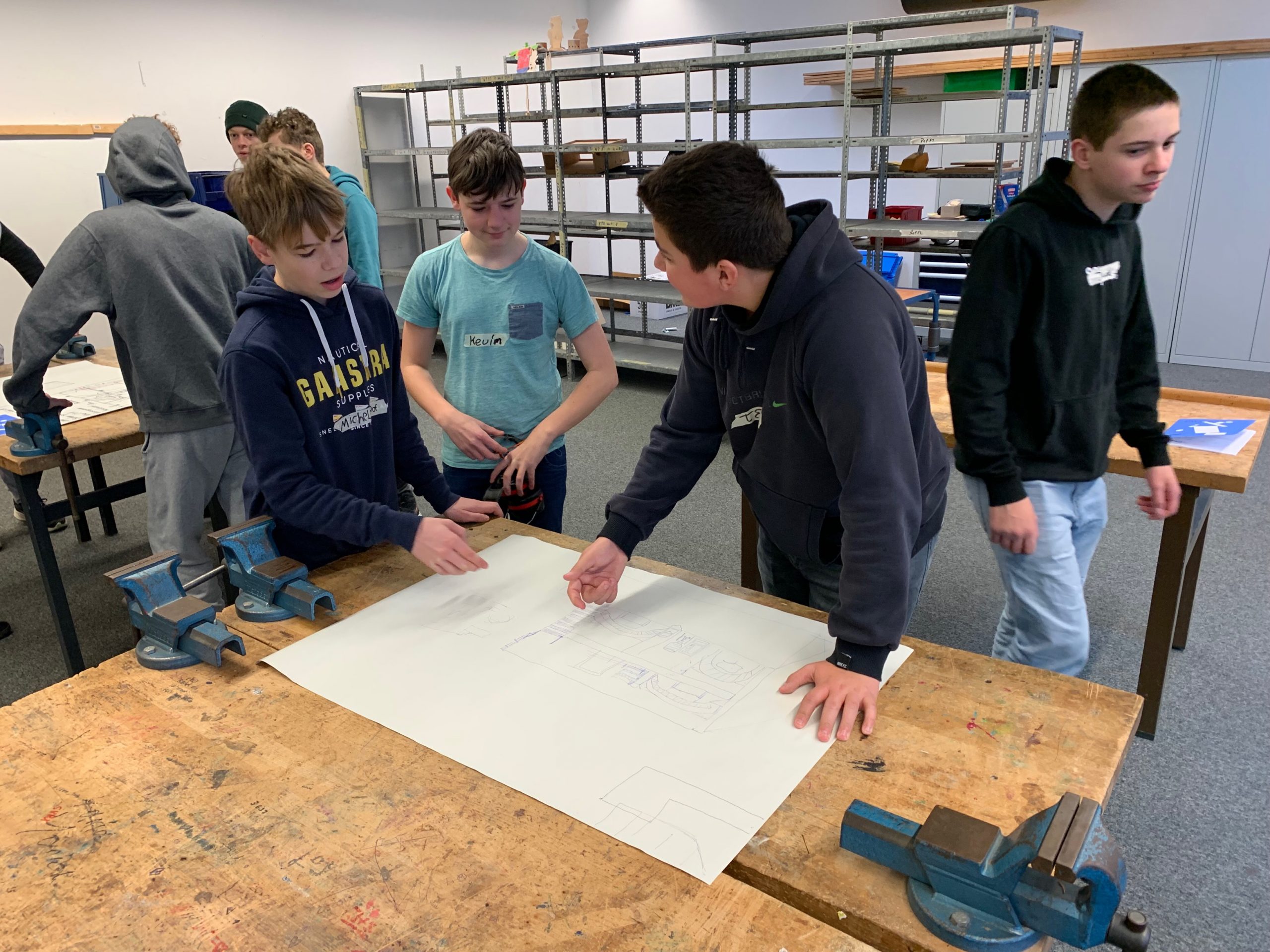 Die Präsentation der Ideen vor dem Hornbach-Team und der Schulleitung stieß auf große Begeisterung, insbesondere die Kreativität und handwerkliche Umsetzung der Ideen wurde gelobt. Der Einbau einer zweiten Etage, Bücherschrank, Getränke- und Snackautomaten, Boxautomat oder Bildschirm, Kuschelecke und bessere Mülleimer – alles wurde bedacht und im Modell dargestellt. Einige Gruppen gingen eher realistisch ans Werk, andere ließen der Phantasie freien Lauf. Die Modelle sind jetzt am Eingang des Lehrerzimmers zu besichtigen.