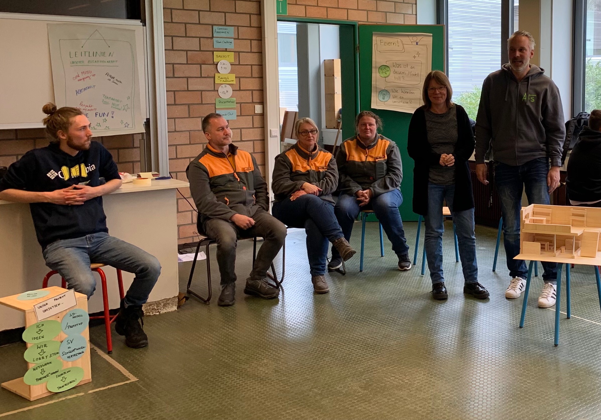 Nun soll im Herbst die Umsetzung der Modelle in die Tat erfolgen. Dazu kommt die Gruppe mit Teamern und Hornbach-Mitarbeiter*innen eine Woche zusammen – und am Ende ist hoffentlich eine tolle neue Abiecke das Ergebnis. Schüler*innen, Teamer und Hornbach-Mitarbeiter*innen, Lehrer*innen und Schulleitung, alle waren sich einig: Das war ein außergewöhnliches, gelungenes Projekt.