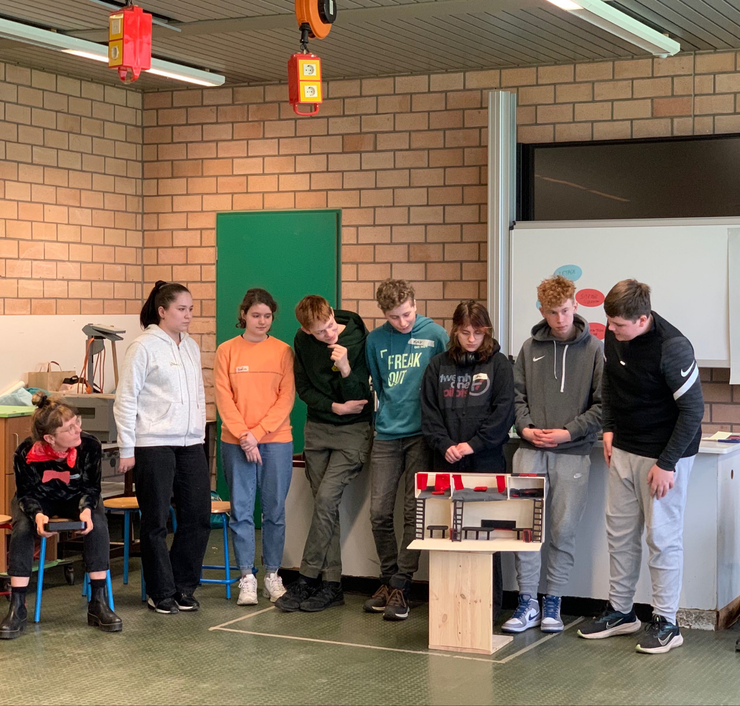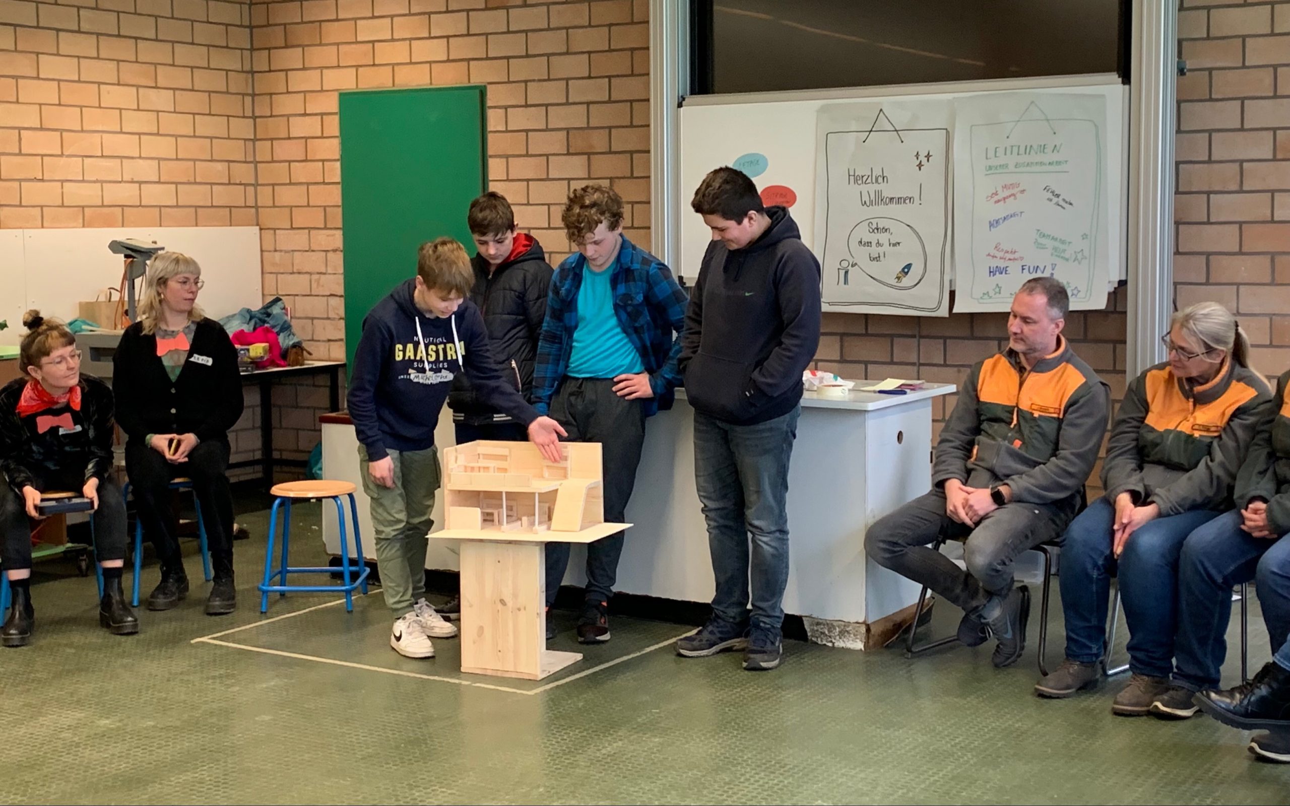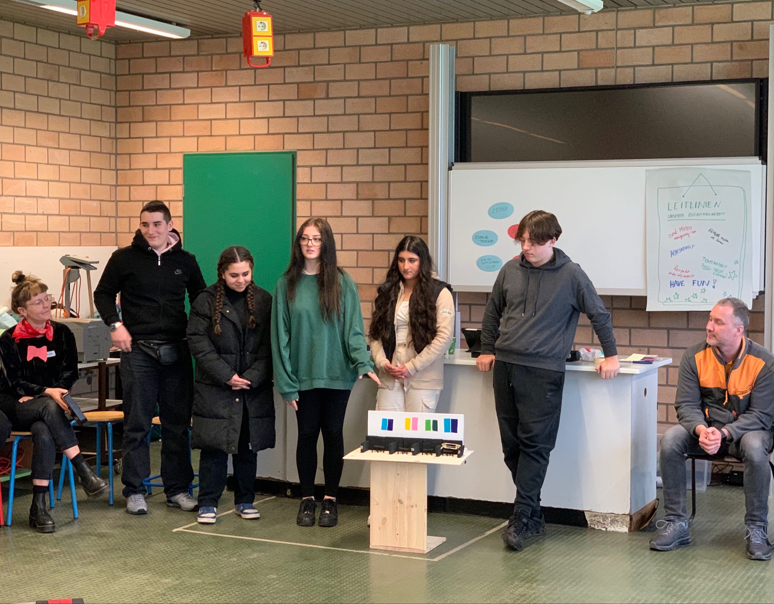 Der zweite Tag stand ganz im Zeichen der Praxis. In Gruppen bauten die Schüler*innen Modelle aus unterschiedlichen Materialien, die ihre Ideen von einer schöneren Abiecke widerspiegelten.