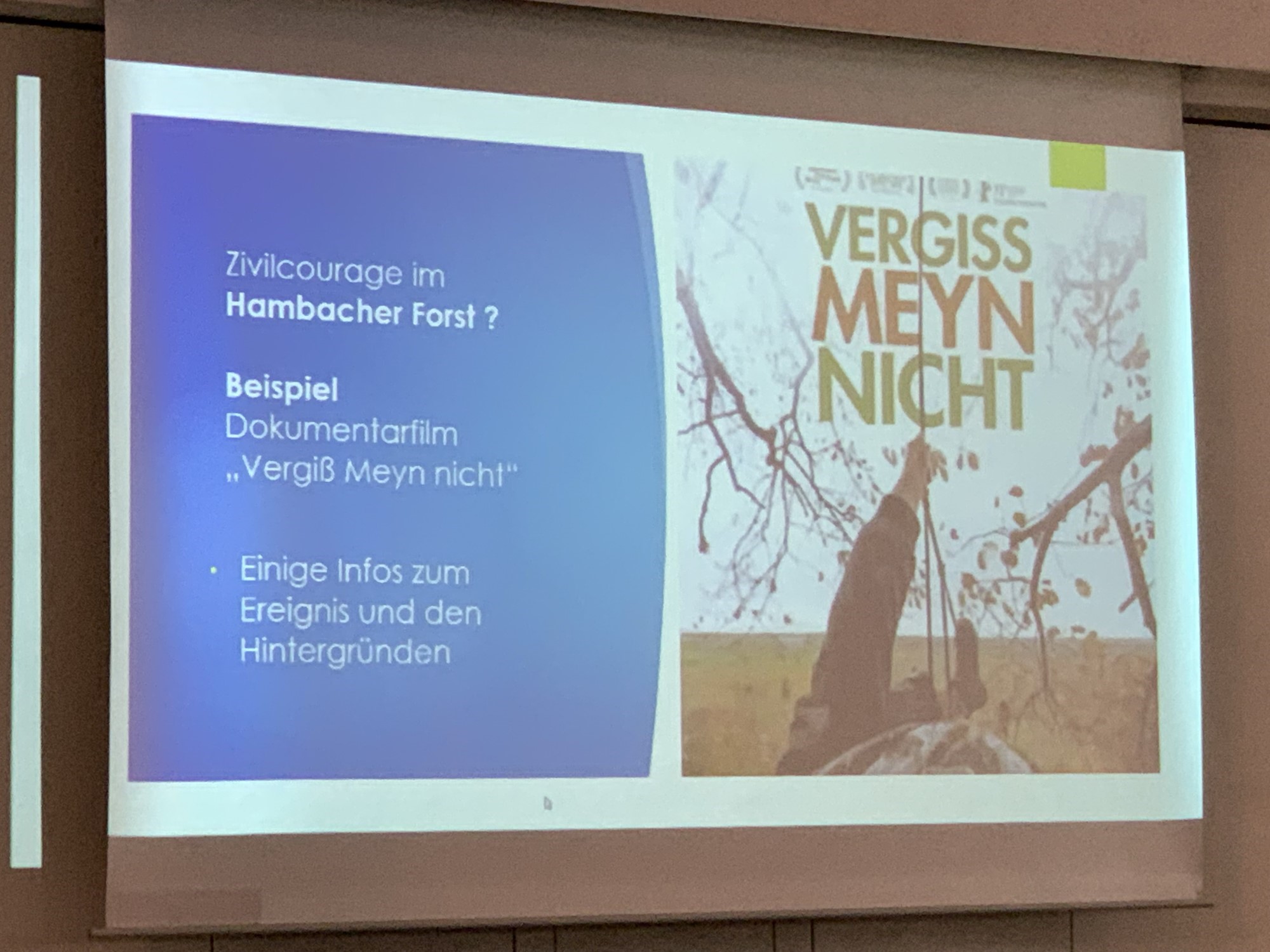 Interaktive Diskussion zu dem Thema „Braucht Freiheit Sicherheit? Zivilcourage im Hambacher Forst“