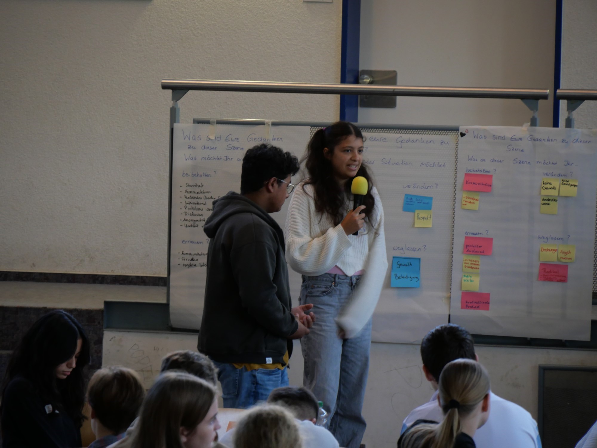 Insgesamt bot sich Raum und Zeit für einen intensiven Austausch untereinander und es wurde ein Bewusstsein für die Herausforderungen und Chancen geschaffen, die sich aus dieser Thematik ergeben. Am Ende hielten Schüler*innen ihre Gedanken in Statements fest.