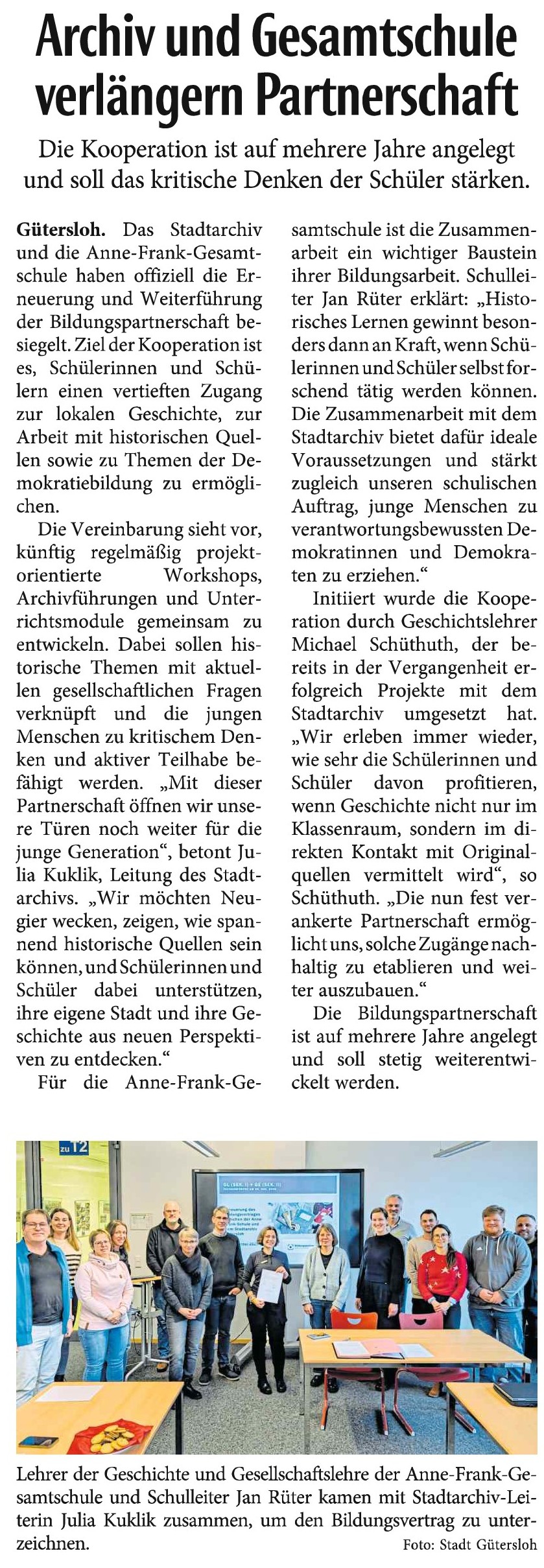Das Stadtarchiv Gütersloh und die Anne-Frank-Gesamtschule gehen gemeinsam weiter auf Zeitreise: